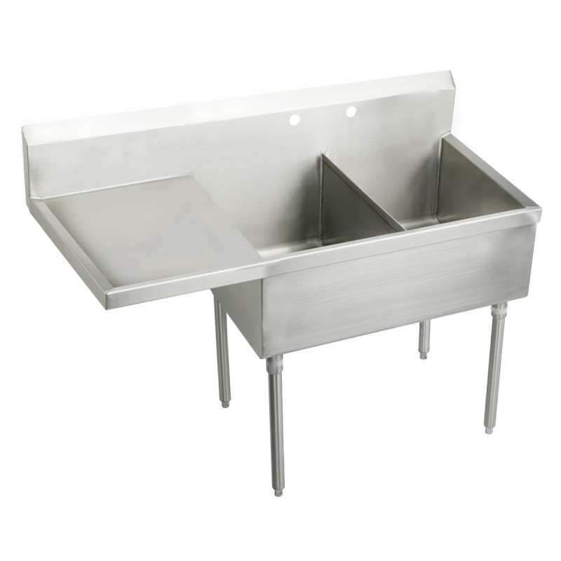 Sturdibilt Stainless Steel 55-1/2" X 27-1/2" X 14" Floor Mount Double Compartment Scullery Sink W/ Drainboard, SS8230LOF2