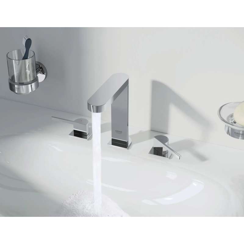 Elegant or minimalist, the GROHE Plus Wideset Bathroom Faucet combines the clean, linear angles of a cube with the gentle curves of a circle making it a distinctive choice no matter the design aesthetic. Engineered to bring comfort and convenience to your bathroom, the Plus Wideset Faucet features the durable GROHE StarLight coating for easy care and lasting beauty.