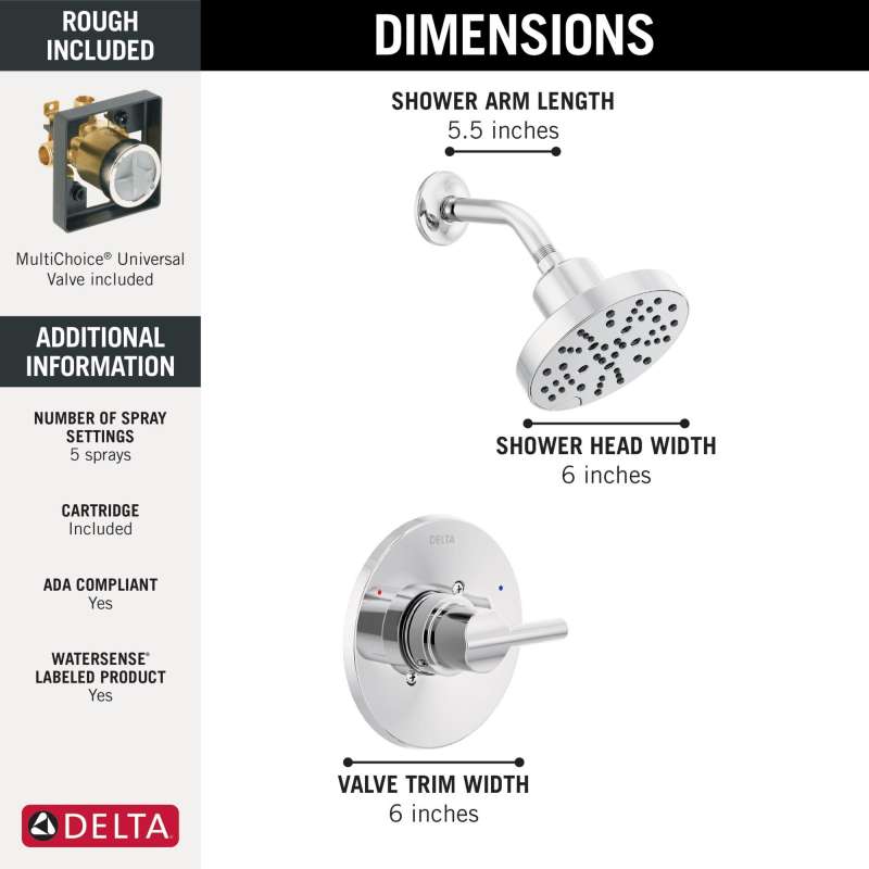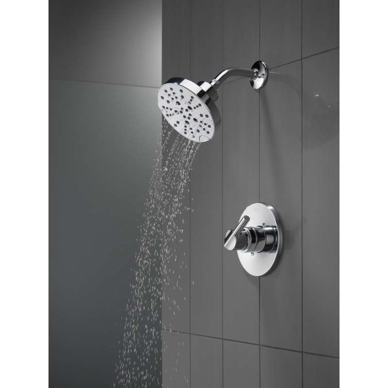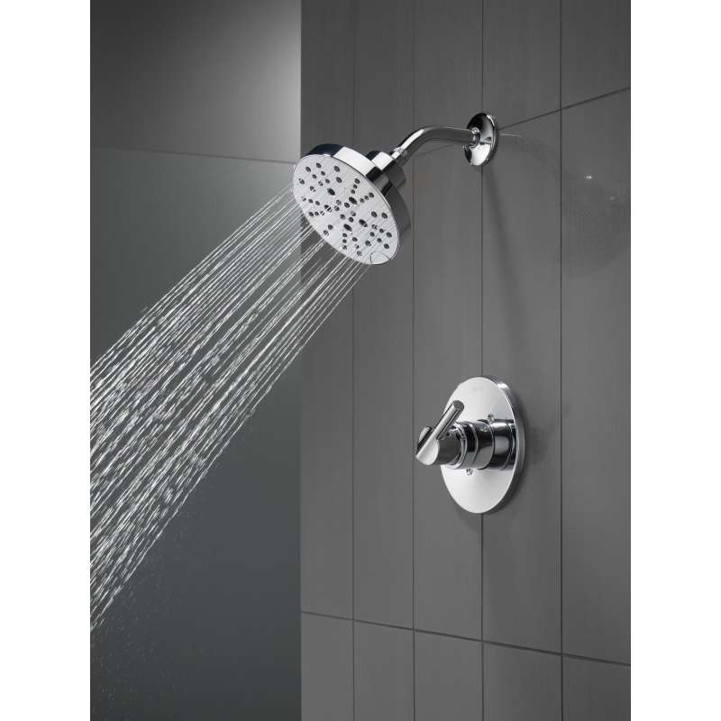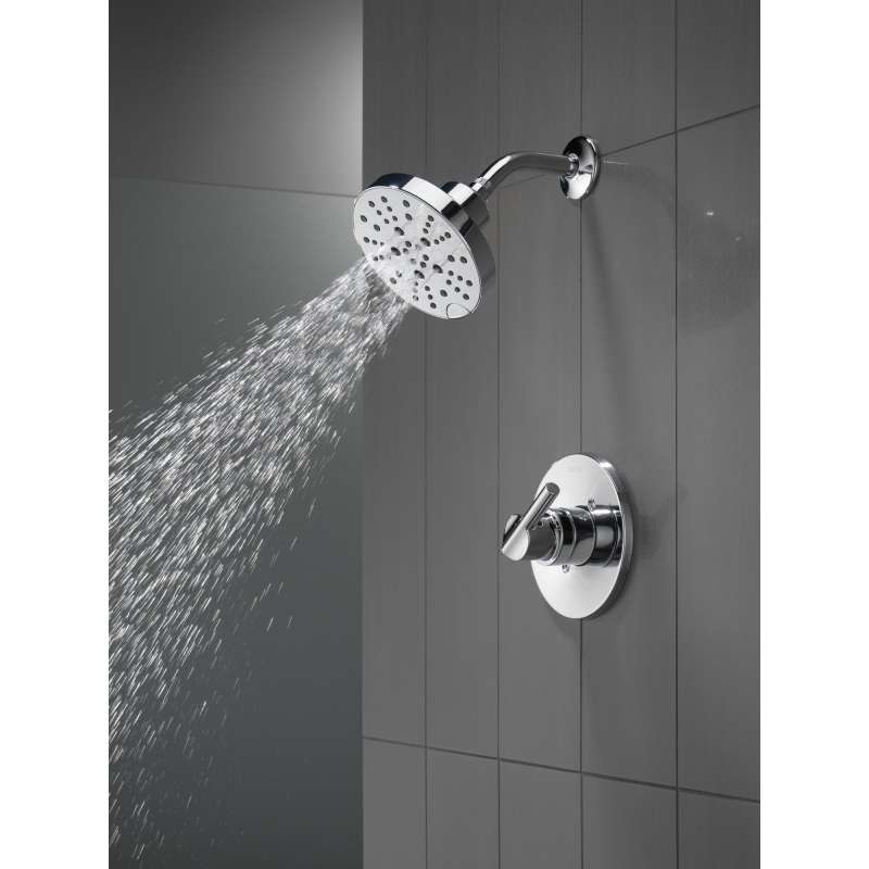 The smooth lines and elegant form of the delta nicoli bath collection add a modern touch to your bath. Delta h2okinetic showers look different because they are different. Using advanced technology, h2okinetic showers sculpt water into a unique wave pattern, giving you 3x the coverage of a standard shower head. The end result is a shower that provides more coverage, more warmth and more intensity for a truly drenching shower experience. While other products may gather unsightly mineral build-up over time, delta soft rubber touch-clean spray holes allow any mineral residue to simply be wiped away for an instantly refreshed look – with no need for soaking or the aid of chemical cleaners. The pause setting gives you ample space for shaving, lathering and other shower tasks, then easily restarts the water with the temperature where you left off. This spray setting helps you conserve water, so you can worry less about depleting your supply of hot water - and you help the environment too. Delta pressure-balance valves use monitor technology to protect you and your family from sudden temperature changes. Delta watersense labeled faucets, showers and toilets use at least 20% less water than the industry standard—saving you money without compromising performance.