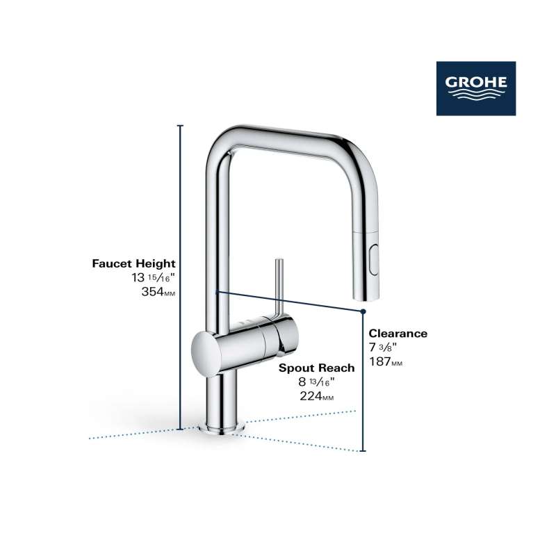 Grohe Single-Handle Kitchen Faucet has pull-out comfort shower head with two different spray types. Whether washing vegetables, cleaning the basin or filling pots - the pull-out comfort shower head gives you maximum freedom of movement in the kitchen. At the push of a button, you can switch between a fine spray jet and a powerful shower jet at any time, making light work of your kitchen chores. Easy installation system with straightforward instructions.
