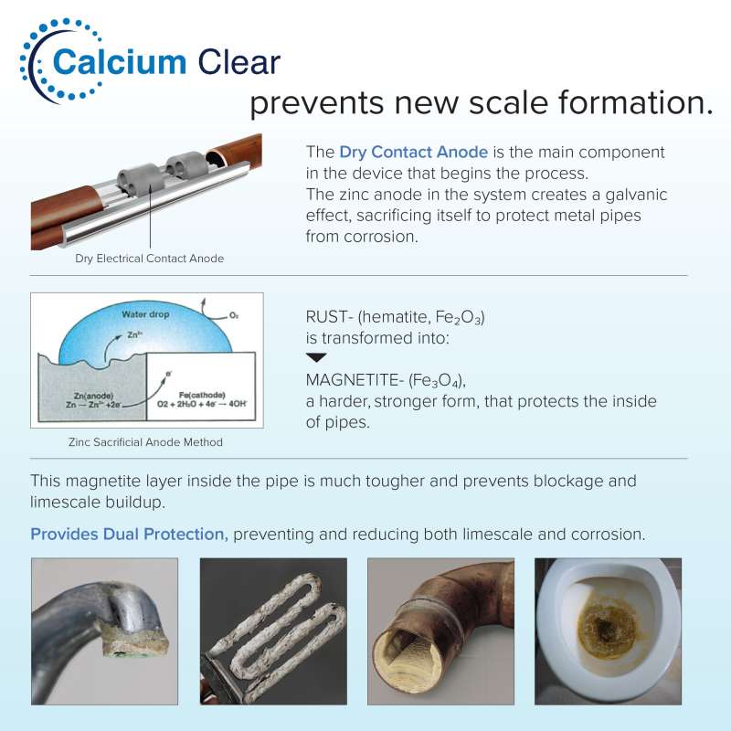 CalciumClear water conditioners offer an eco-friendly solution, crafted in England. This electrostatic device, utilizing galvanic action, effectively dissolves and prevents scale buildup. It keeps scale particles in the water flow, while the Dry Contact Anode’s galvanic effect eliminates existing scale and corrosion. Designed with durable, high-quality materials, it ensures long-lasting performance. By extending the lifespan of equipment and reducing energy consumption, it operates with zero ongoing costs. The precipitation process also helps remove unwanted nutrients with no chemicals, magnets, or moving parts needed. The result is cleaner water and longer-lasting systems.