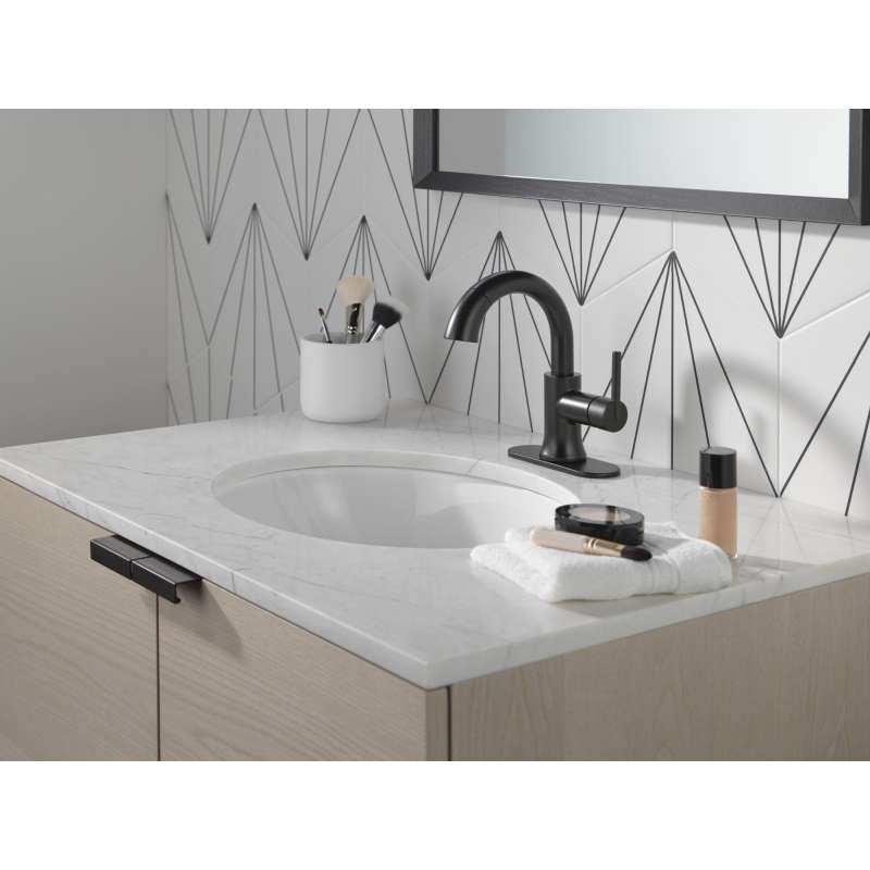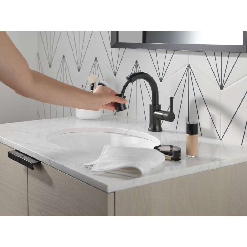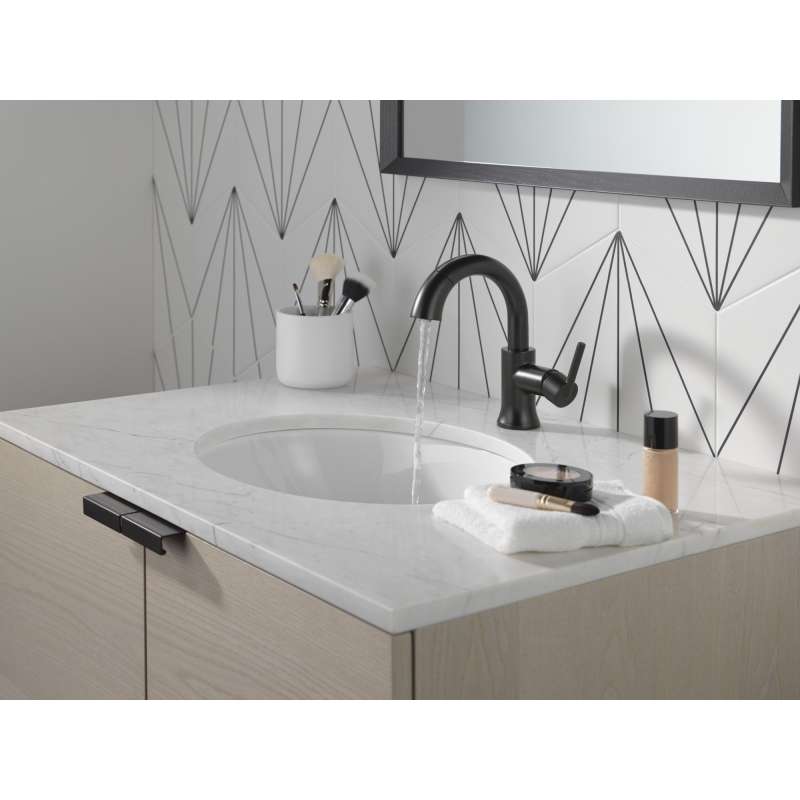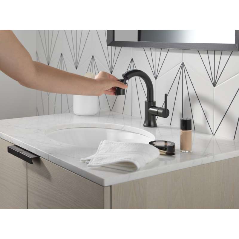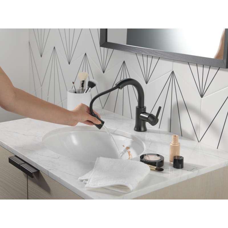 Inspired by the sleek elegance of modern european design, the trinsic bath collection completes the look of any contemporary bath. The pull-down spray wand features delta magnatite docking which uses a powerful integrated magnet to pull your faucet spray wand precisely into place and hold it there so it stays docked when not in use. The worry-free drain catch is a simple solution to the common problem of pills, jewelry or other valuables washing down the drain. Delta faucets with diamond seal technology perform like new for life with a patented design that reduces leak points, is less hassle to install and lasts twice as long as the industry standard. Delta watersense labeled faucets use at least 20% less water than the industry standard — helping you save water without compromising performance. You can install with confidence, knowing that delta faucets are backed by our lifetime limited warranty.