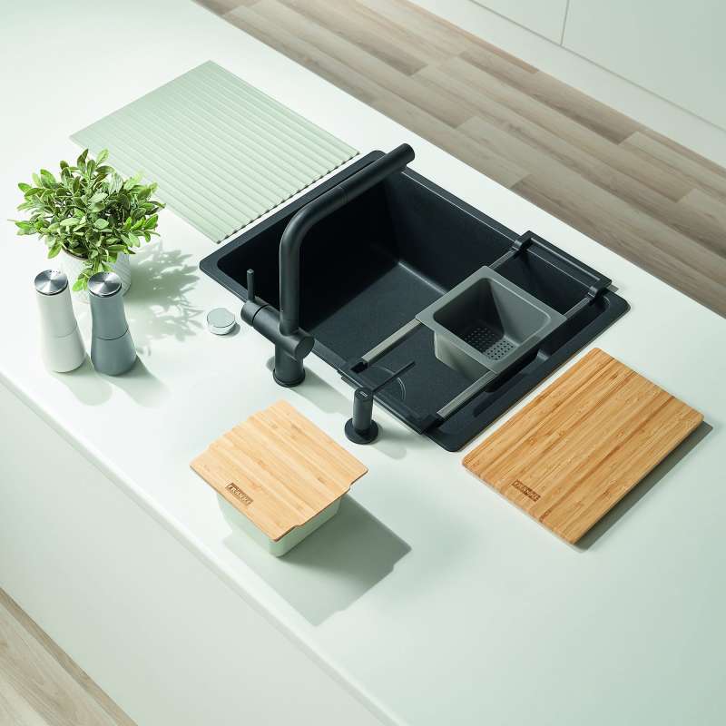 All-In is the flexible food preparation system that transforms your sink into a stylish and playful workstation designed to bring more flow to your kitchen and life. Well-equipped and intuitive, this modular accessory system has all you need to prepare meals easily, saving you time and space and allowing you to shift seamlessly between different tasks. So, for great meals with no interruptions, it all comes together with All-In.