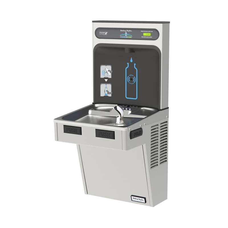 The Halsey Taylor HydroBoost Bottle Filling Station delivers a clean quick water bottle fill and enhances sustainability by minimizing our dependency on disposable plastic bottles. Complete cooler and bottle filling station in a consolidated space saving ADA compliant design. Bottle Filler features sanitary no-touch sensor activation with automatic 20-second shut-off timer.