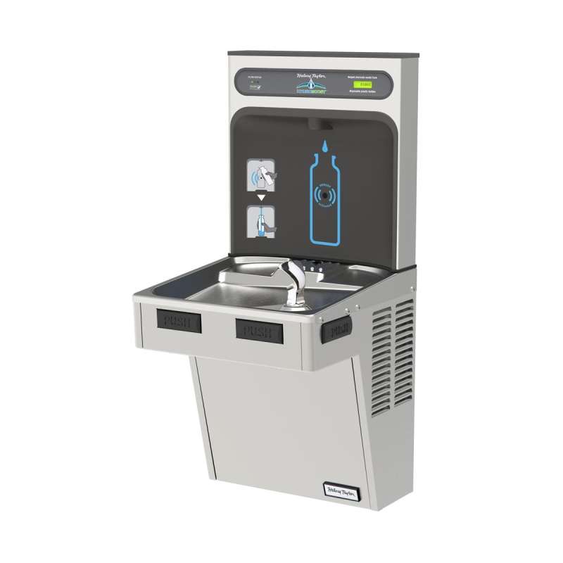The Halsey Taylor HydroBoost Bottle Filling Station delivers a clean quick water bottle fill and enhances sustainability by minimizing our dependency on disposable plastic bottles. Complete cooler and bottle filling station in a consolidated space saving ADA compliant design. Bottle Filler features sanitary no-touch sensor activation with automatic 20-second shut-off timer.