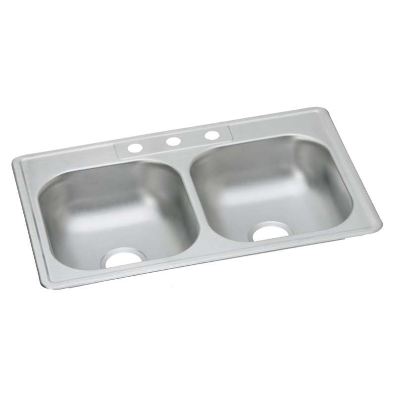 Dayton Stainless Steel 33" X 22" X 6-9/16" 3-Hole Equal Double Bowl Drop-In Sink, D233223 Satin