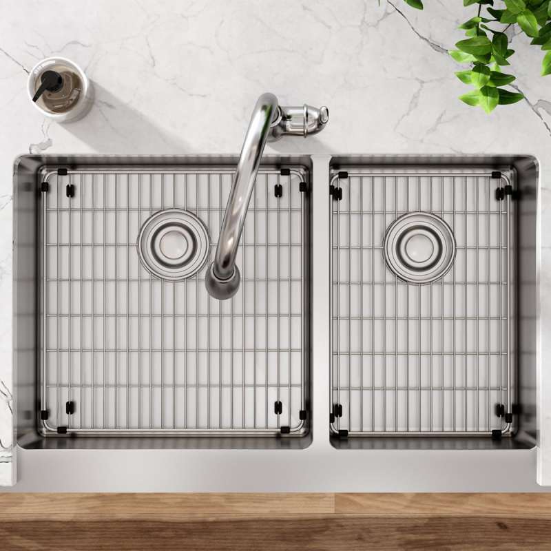 • FARMHOUSE DESIGN: Material extends to the front panel of the sink, adding a stylish design element to your kitchen. Compatible with standard farmhouse cabinet