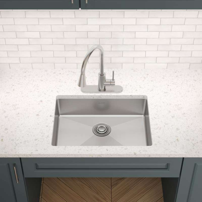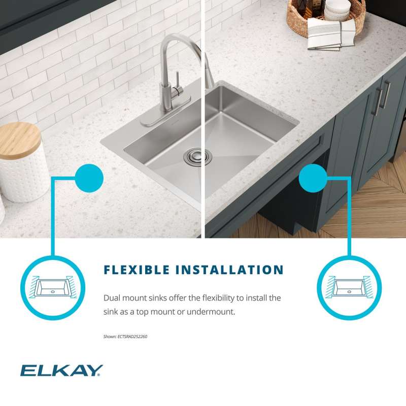 The Elkay Crosstown collection offers a fresh take on the classic stainless steel sink, combining beauty, function and contemporary design. Tight corners and a flat bottom provide more space inside the sink bowl for stacking and cleaning dishes. The striking geometric shape makes a statement in any home.