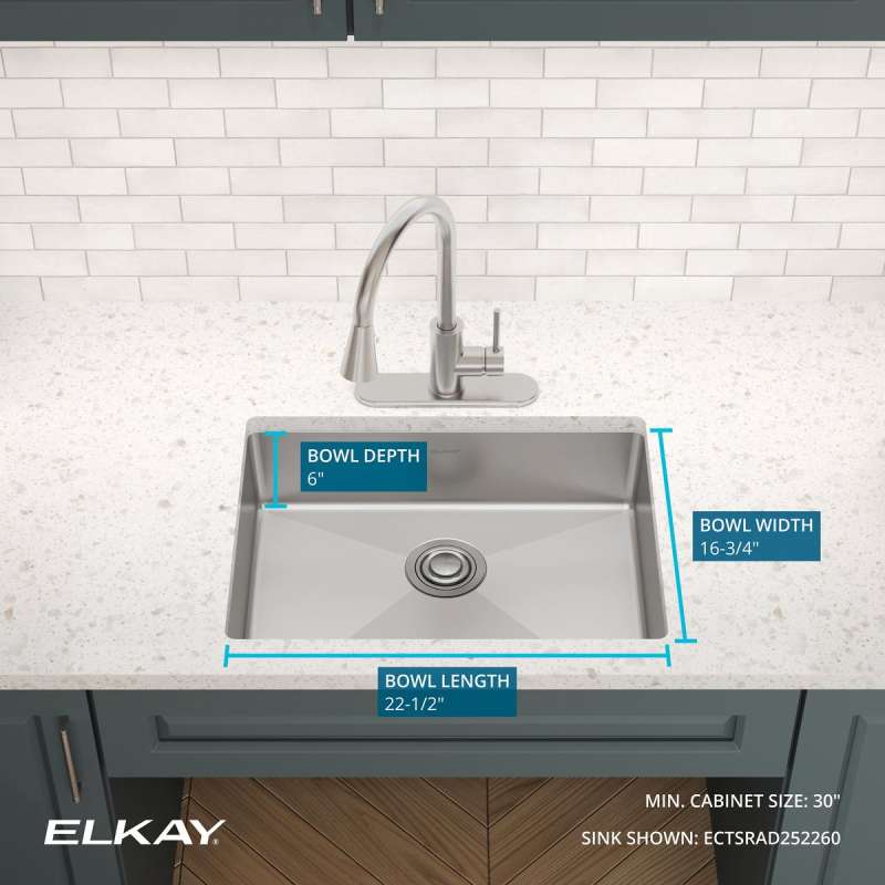 • CABINET SIZE: Minimum cabinet size for this sink is 30"