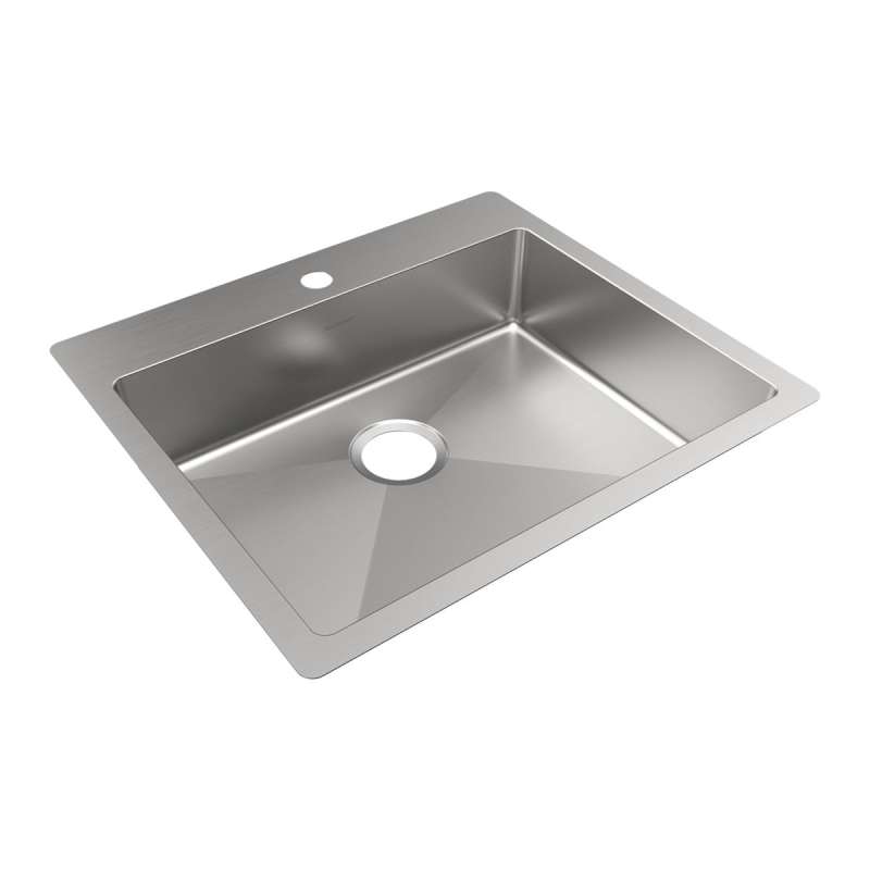 Crosstown 18 Gauge Stainless Steel 25" X 22" X 6" 1-Hole Single Bowl Dual Mount Ada Sink, ECTSRAD2522601 Polished Satin