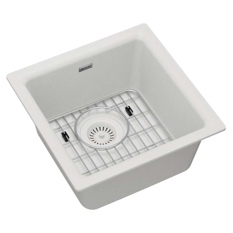 Quartz Classic 15-3/4" X 15-3/4" X 7-11/16" Single Bowl Dual Mount Bar Sink Kit White, ELG1616WH0C