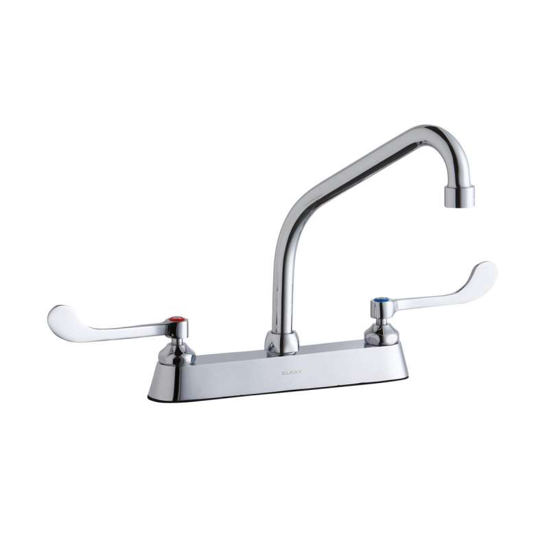 8" Centerset With Exposed Deck Faucet With 8" High Arc Spout 6" Wristblade Handles Chrome, LK810HA08T6 Chrome