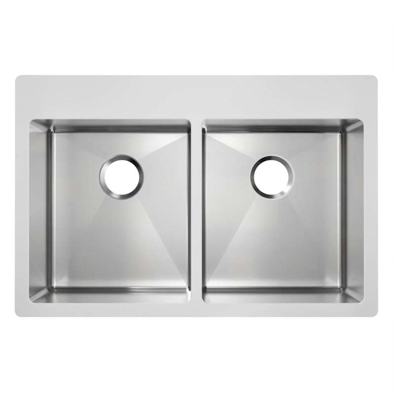 Stainless Steel 33" X 22" X 5 1/2" Drop-In Equal Double Bowl Radiant Satin 18 Gauge 1-Hole Ada Sink 50 Pk, MFD1121-50 Radiant Satin