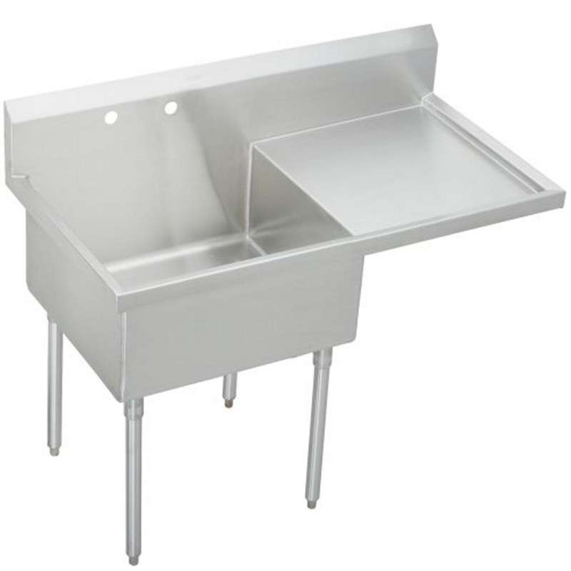 Weldbilt Stainless Steel 61-1/2" X 27-1/2" X 14" Floor Mount Single Compartment 2-Hole Scullery Sink W/Right Drainboard, WNSF8136R2