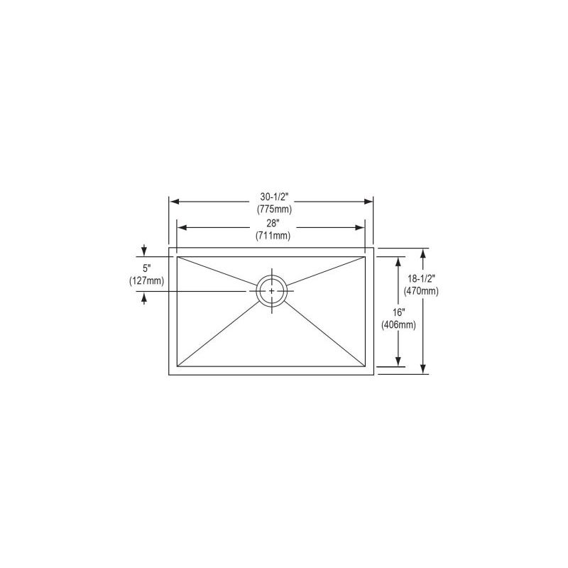 • Sink Dimensions: L: 30-1/2" W: 18-1/2" H: 10"