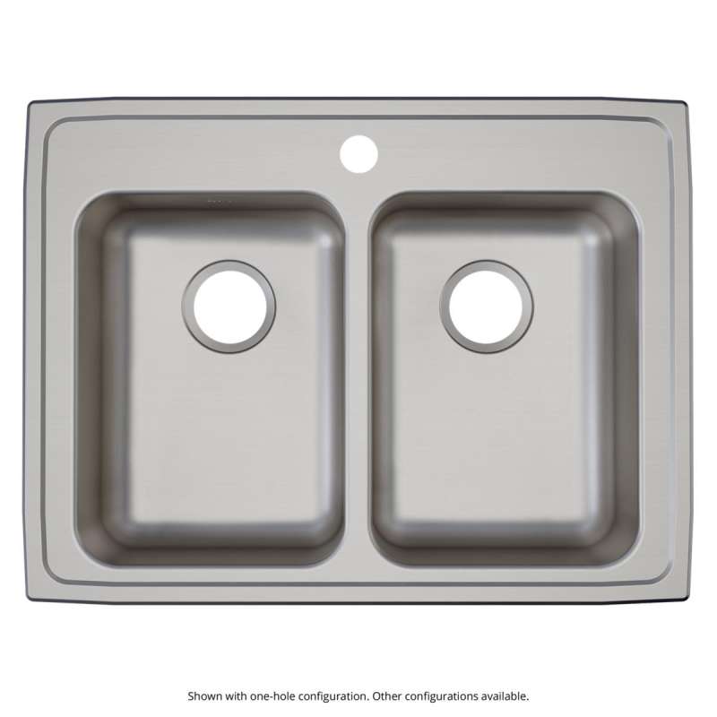 Lustertone Classic Stainless Steel 29" X 22" X 6-1/2", 0-Hole Equal Double Bowl Drop-In Ada Sink, LRAD2922650 Lustrous Satin