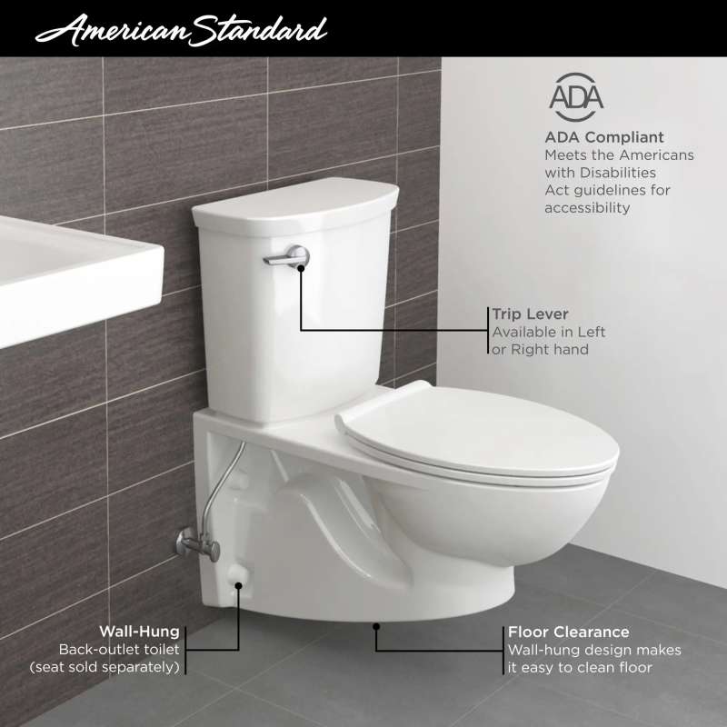 • Commercial wall-hung design: Two-piece, elongated, back-outlet configuration ideal for modern commercial, institutional, and healthcare facilities