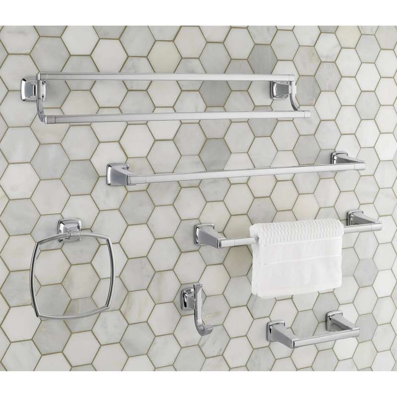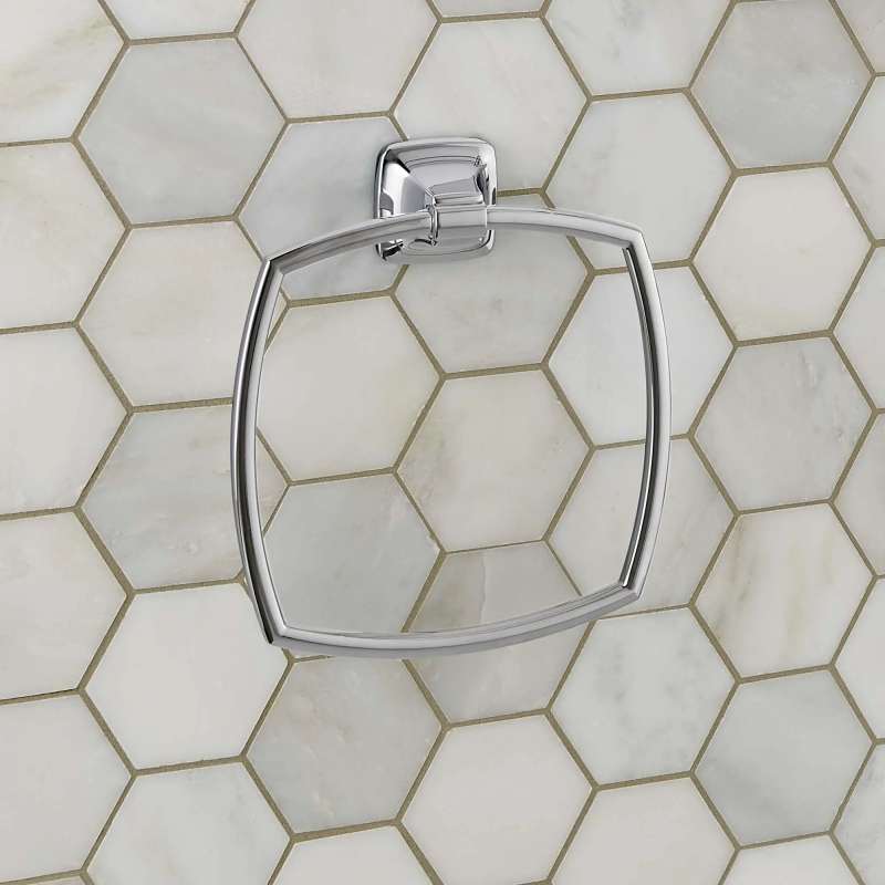 The Townsend Towel Ring from American Standard accents a bathroom with its clean lines and architecturally inspired design. A part of the expertly coordinated Townsend Collection, the towel ring is made of sturdy metal with concealed mounting - so no screws are exposed, creating a seamless look. This easy-to-install towel ring is available in a variety of finishes.