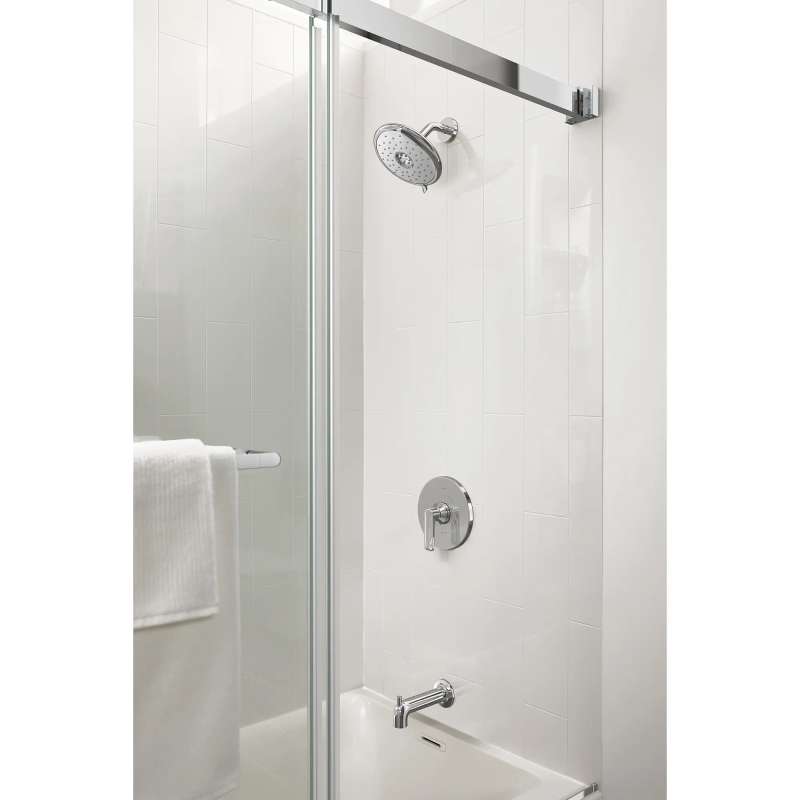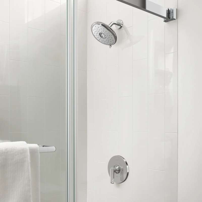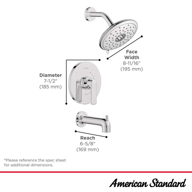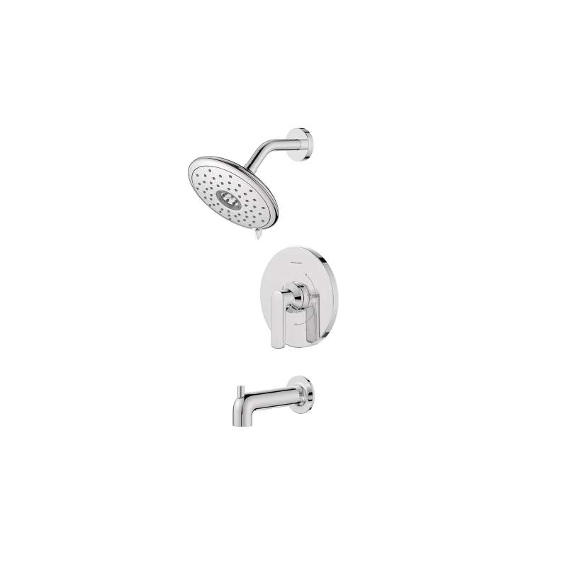 The Aspirations Tub and Shower Trim from American Standard is a contemporary style designed to complement the entire Aspirations bathroom collection. It features a versatile 4-function shower head with lever to easily alternate between sprays, and technology to ensure consistent water temperature for the duration of your shower. Includes shower head, metal lever handle with one-piece cartridge, diverter tub spout. Requires Flash(R) Shower Rough-in Valve, sold separately.