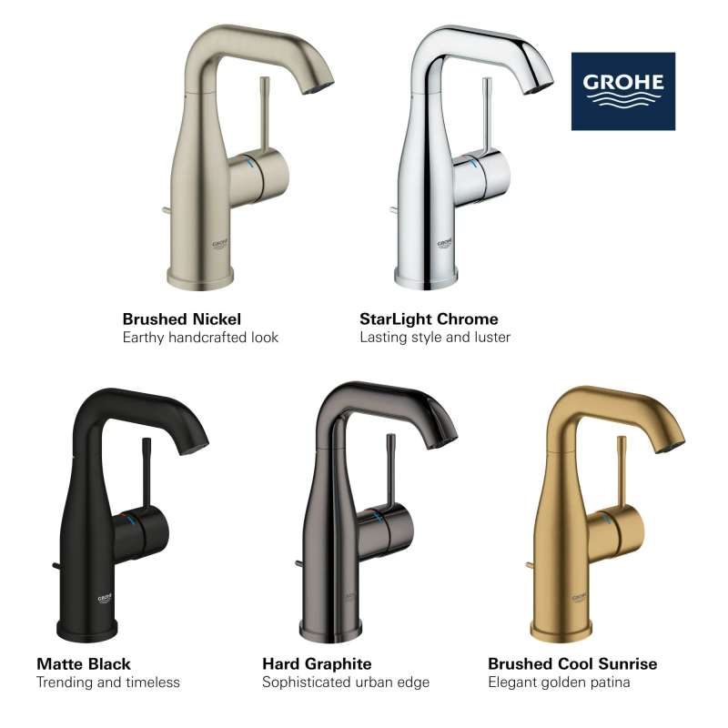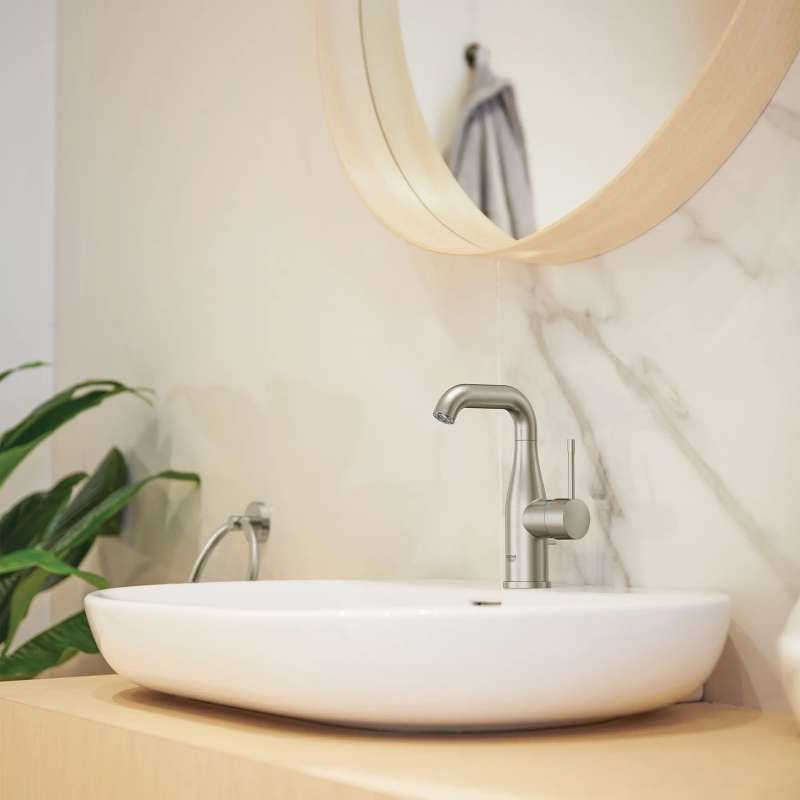 Sleek and sophisticated, the GROHE Essence Single-Handle Single-Hole Bathroom Faucet is a distinctive style with a gently curved swivel spout and side lever handle. This water-saving faucet reduces water usage while providing superior performance. Available in an array of exquisite, on-trend finishes. The Essence single-handle bathroom faucet embodies all the elements of precision craftsmanship and design excellence.