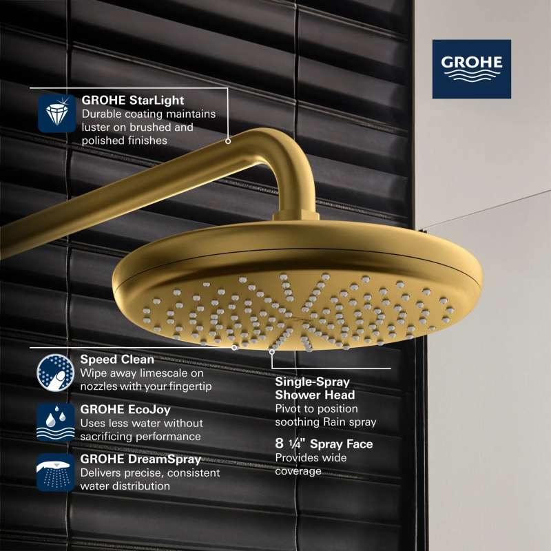 Enhance your showering experience with the GROHE Tempesta 210 Shower Head. Easy to install, this single-spray shower head delivers a soothing Rain spray. Equipped with GROHE DreamSpray technology, the Tempesta Shower Head delivers precise and consistent water distribution to each individual nozzle for a difference you can feel.