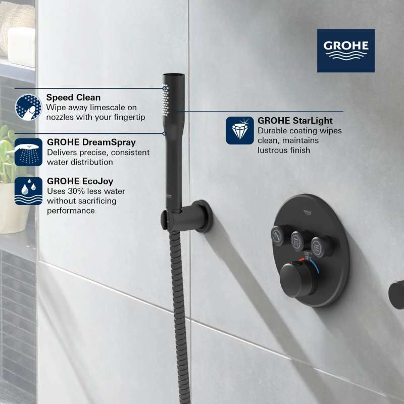 The Euphoria Cosmopolitan Stick Hand Shower from GROHE adds a clean, contemporary touch to the bathroom. This sleek hand shower has an easy-to-use, ergonomic profile and single spray, perfect for allover showering and rinsing the tub. Equipped with exclusive GROHE features, it combines great style and superior performance. Universal design fits on all standard shower hoses.