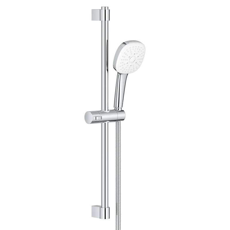 The Tempesta 110 Cube 24-inch Shower Rail Set from GROHE features the Tempesta 110 Cube Hand Shower with innovative SmartSwitch dial that makes it easy to change from a soothing Rain spray to a powerful Jet spray or a relaxing Massage spray. The 4 1/4-inch spray face offers generous coverage. Designed and engineered in Germany, this contemporary shower rail set also includes a sleek, 24-inch (600 mm) rail with gliding hand shower holder, metal shower hose, and adjustable upper bracket to cover existing holes when installing.