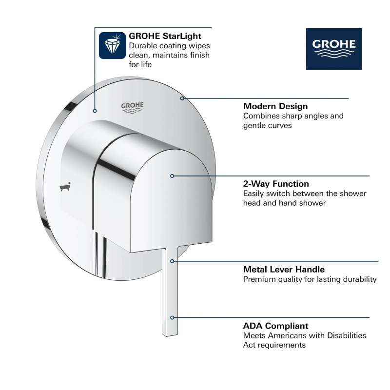 Elegant or minimalist, GROHE Plus combines the clean, linear angles of a cube with the gentle curves of a circle making it a distinctive choice no matter the design aesthetic. Engineered to bring comfort and convenience to your bathroom, it features the durable GROHE StarLight coating for easy care and lasting beauty.