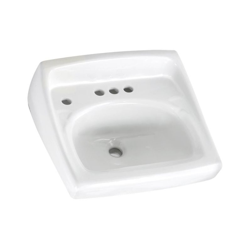 Wall Mounted Lavatory Sink for Wall Hangers (included) or Concealed Arms (not included) with Three Faucet Holes (4 Centers) in White
