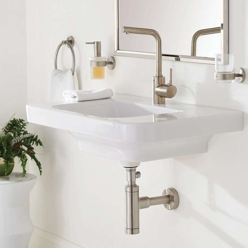 Clean, simple lines make the Essentials 8" Towel Ring the perfect complement for any bathroom design. Made of metal with a tarnish- and scratch-resistant finish for durability and lasting luster.
