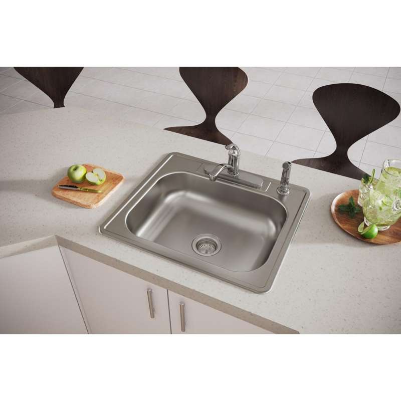 • DROP-IN INSTALLATION: Sink is installed above the countertop, an ideal choice if you are not replacing the counter; has a beautifully finished rim