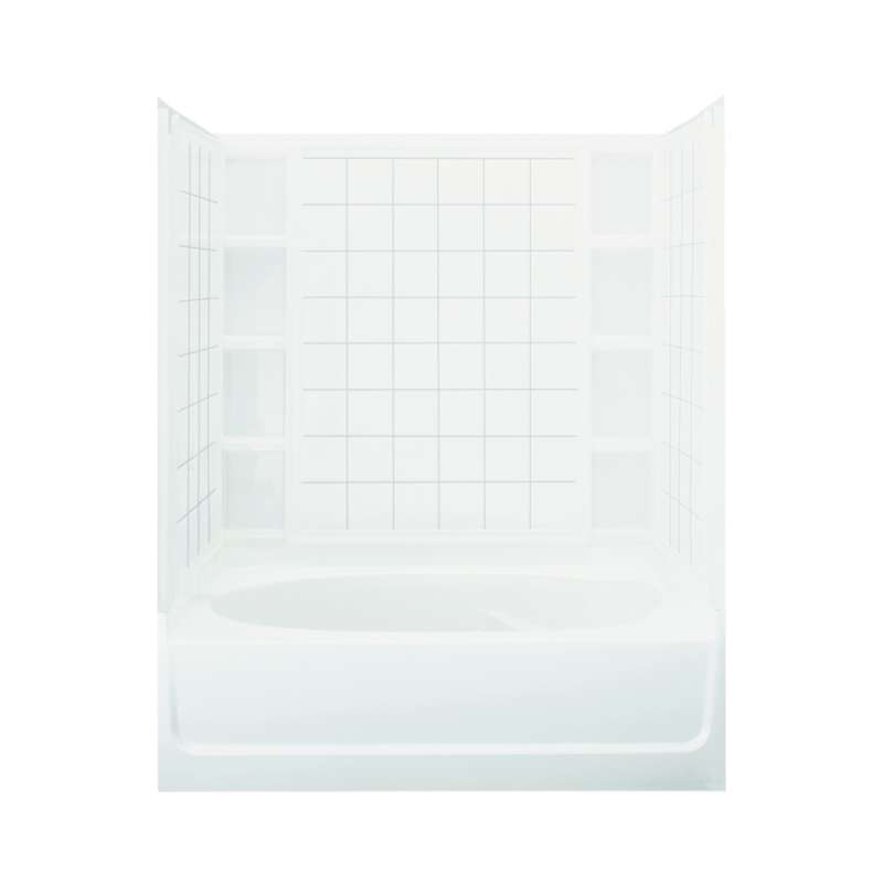 71100118 Ensemble 74.25-in x 36-in x 60-in Vikrell Wall and Floor 4-Piece Alcove Shower Kit with Bathtub White,Biscuit