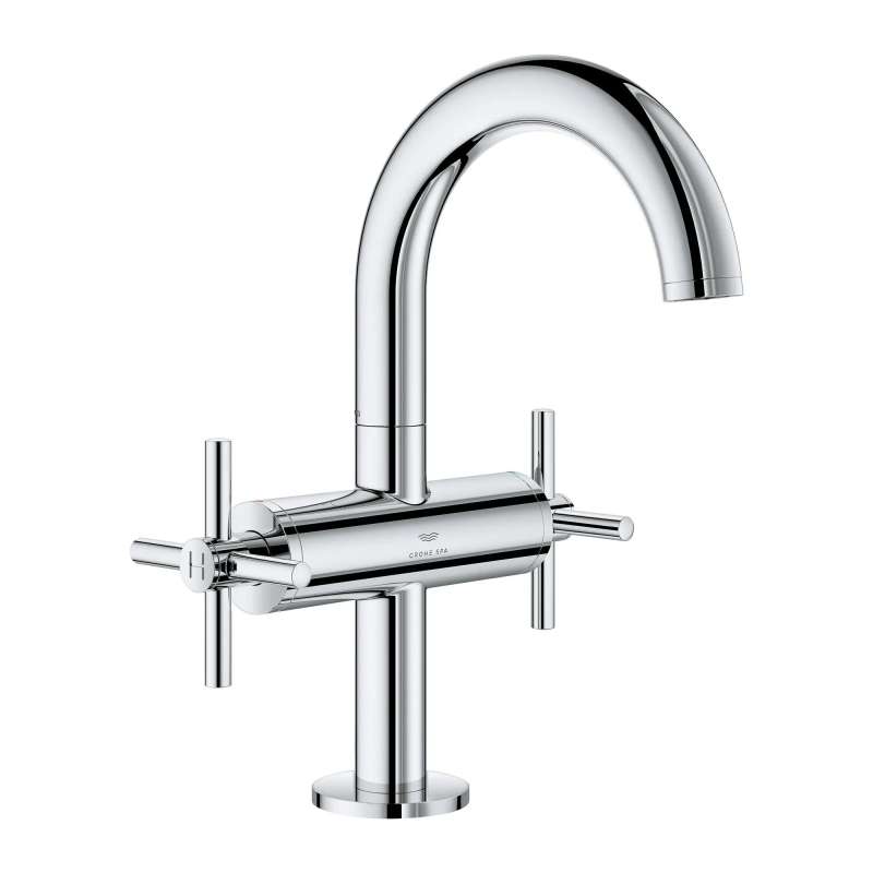 The GROHE SPA Atrio Single-Hole Two-Handle Bathroom Faucet enhances a soothing, at-home spa setting with its minimalist lines and unique design. Precision crafted, this one-hole, solid brass bathroom faucet features a high-arc swivel spout for added convenience. Engineered to deliver an exceptional experience, the Atrio bathroom faucet ensures superior functionality and visual beauty in today's most luxurious bathrooms.