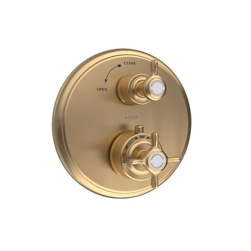 • Axor Montreux Thermostatic Trim With Volume Control- Cross-Handle In Brushed Gold Optic, 16817251 Brushed Gold Optic