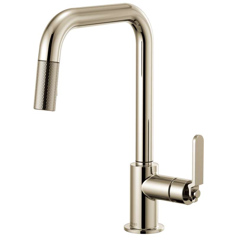 • Pull-Down Faucet with Square Spout and Industrial Handle in Polished Nickel Finish Polished Nickel