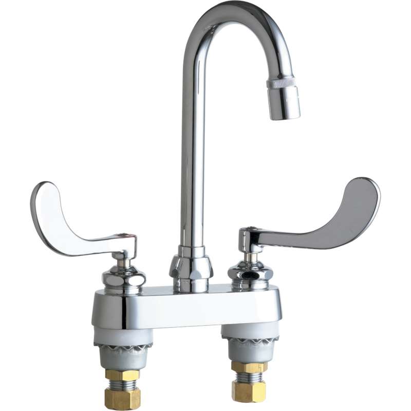 Deck-Mounted Manual Ecast Sink Faucet with 4" Centers, 3-1/2" Rigid/Swing Gooseneck Spout and E36 Outlet in Polished Chrome Polished Chrome