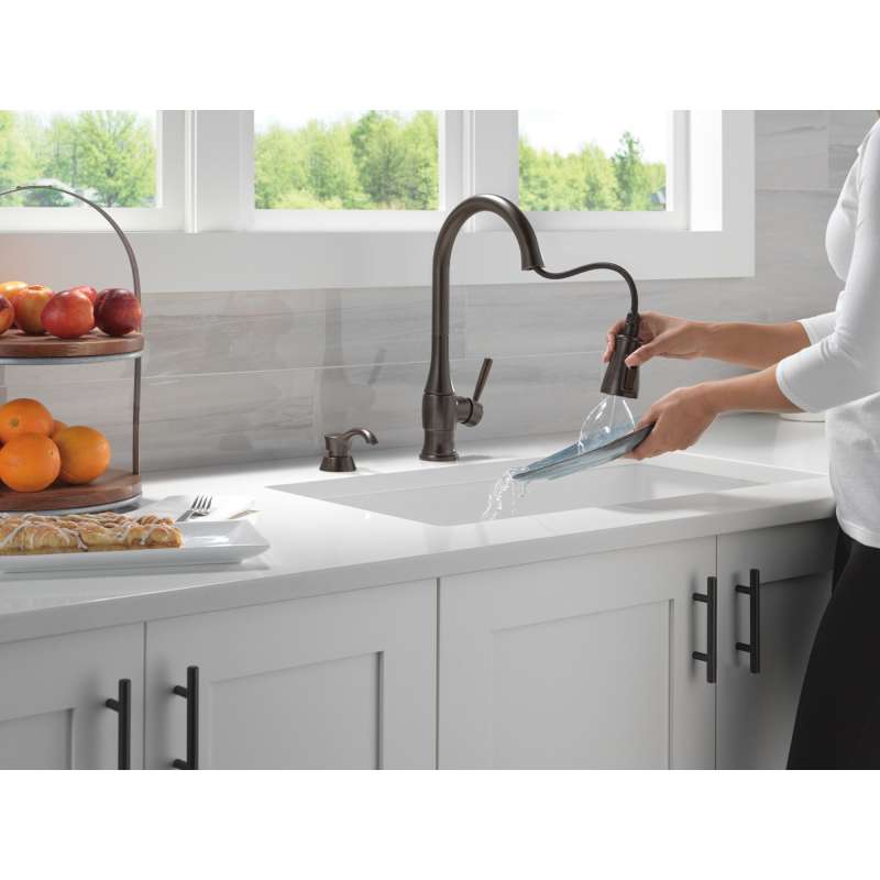 • 19831Z-RBSD-DST Hazelwood Single Handle Pull Down Kitchen Faucet with Soap Dispenser and ShieldSpray Technology, Venetian Bronze Venetian Bronze