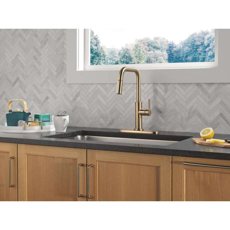 The nicoli collection balances minimalist design trends with an elevated, sleek look that easily ADApts to change as your style evolves. Delta magnatite docking uses a powerful integrated magnet to set your pull down sprayer precisely into place and hold it there so it stays docked when not in use. Kitchen sink faucets with touch-clean spray holes allow you to easily wipe away calcium and lime buildup with the touch of a finger. You can install with confidence, knowing that delta kitchen faucets are backed by our lifetime limited warranty.