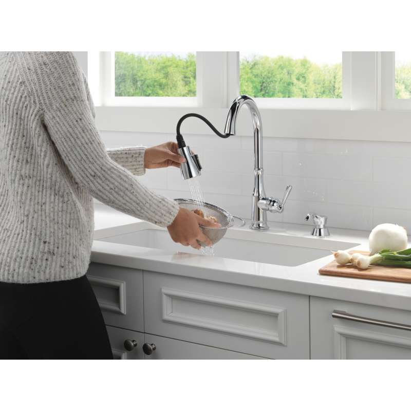 • 19877Z-SD-DST Capertee Single Handle Pull Down Kitchen Faucet with Soap Dispenser and ShieldSpray Technology, Chrome Chrome