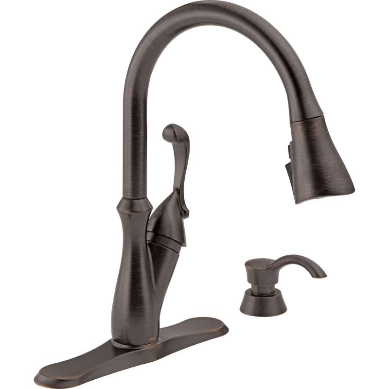 • 19950Z-RBSD-DST Arabella Single Handle Pull Down Kitchen Faucet with Soap Dispenser and ShieldSpray, Venetian Bronze Venetian Bronze