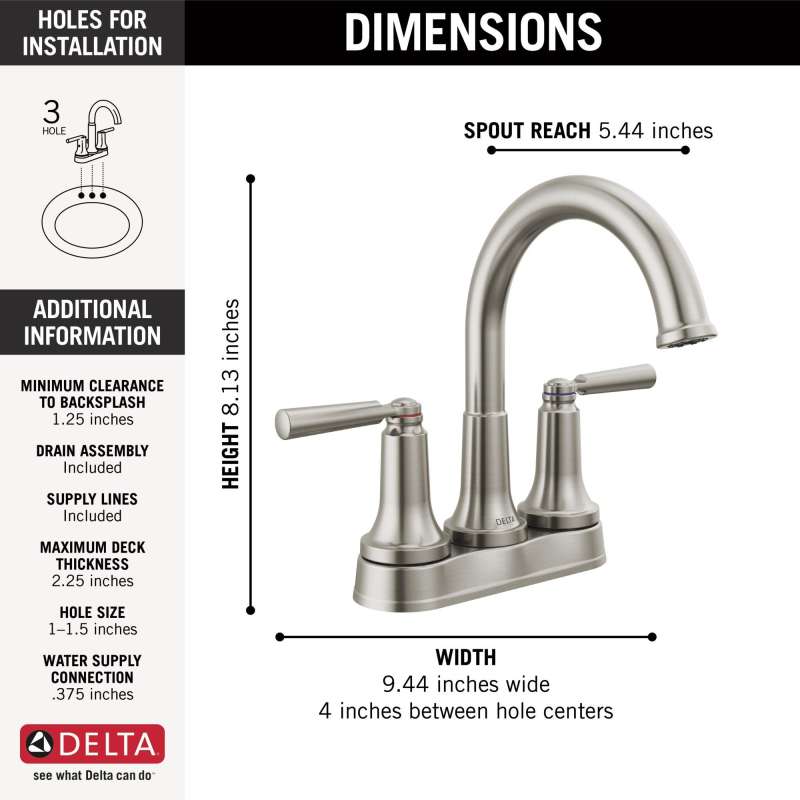 The saylor bath collection is an intriguing blend of traditional and contemporary design elements with strong, geometric forms and hints of industrial style in the handles. Delta faucets with diamond seal technology perform like new for life with a patented design that reduces leak points, is less hassle to install and lasts twice as long as the industry standard. Delta watersense labeled faucets use at least 20% less water than the industry standard — helping you save water without compromising performance. You can install with confidence, knowing that delta faucets are backed by our lifetime limited warranty.