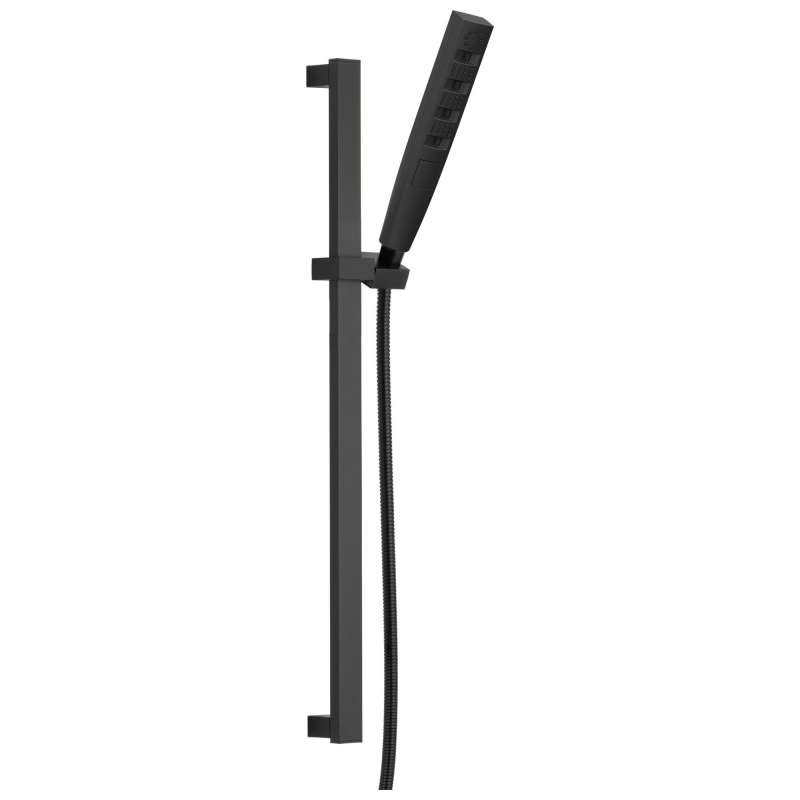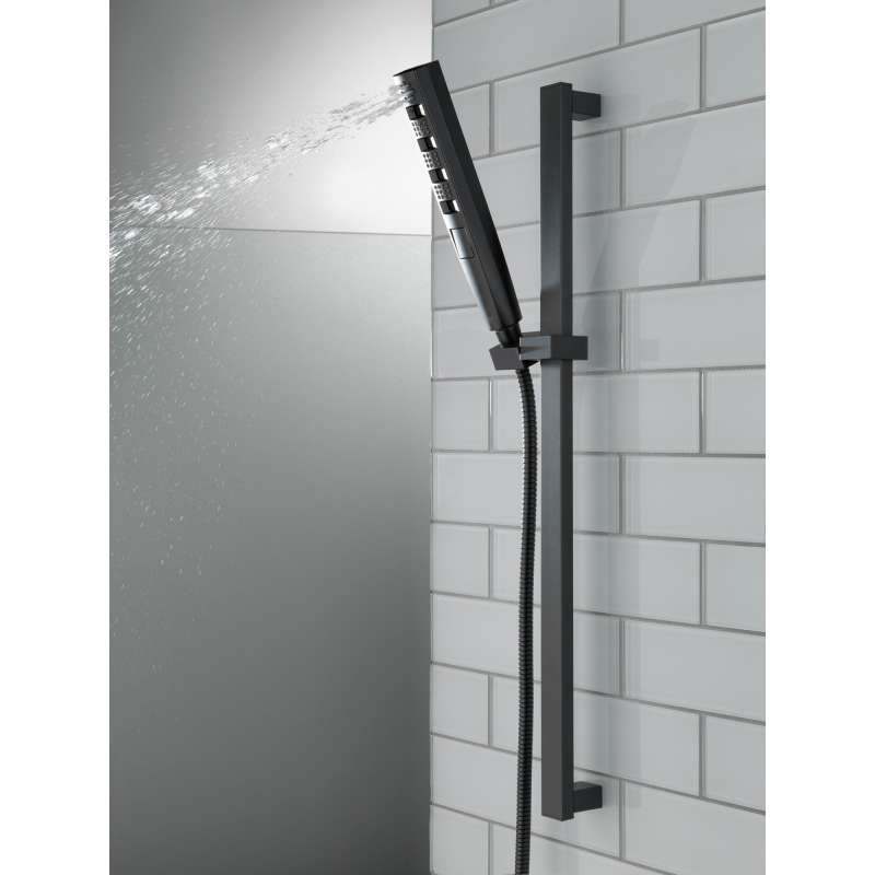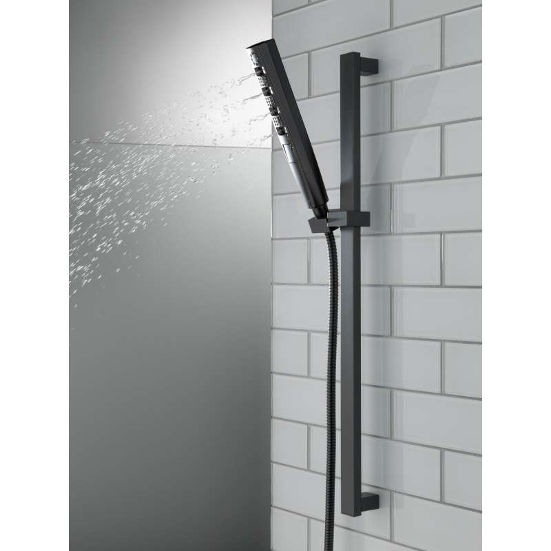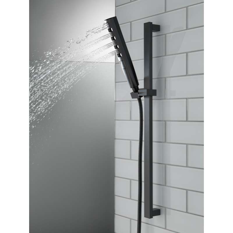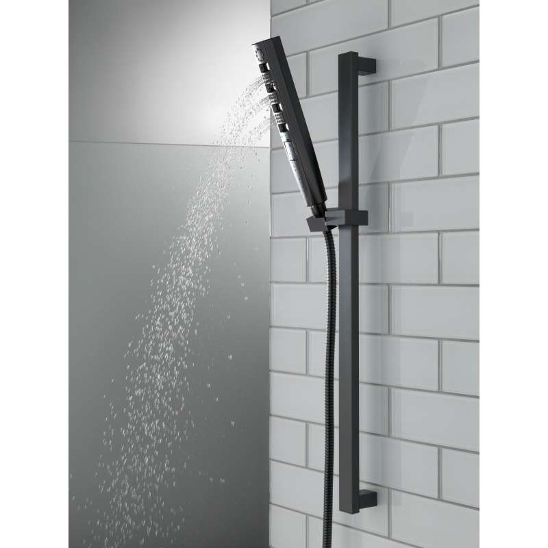 Experience a better shower with the control and flexibility of a Delta hand shower. Great for showering yourself or your loved ones and pets, as well as for keeping your shower and tub clean. Delta H2Okinetic Showers look different because they are different. Using advanced technology, H2Okinetic showers sculpt water into a unique wave pattern, giving you 3X the coverage of a standard shower head.* The end result is a shower that provides more coverage, more warmth and more intensity for a truly drenching shower experience. So go ahead and indulge, because now you can enjoy the feeling of more water without using more water. The Matte Black finish makes a statement in your space, cultivating a sophisticated air and coordinating flawlessly with most other fixtures and accents. With bright tones, Matte Black is undeniably modern with a strong contrast, but it can complement traditional or transitional spaces just as well when paired against warm neutrals for a rustic feel akin to cast iron. While other products may gather unsightly mineral build-up over time, Delta soft rubber Touch-Clean spray holes allow any mineral residue to simply be wiped away for an instantly refreshed look – with no need for soaking or the aid of chemical cleaners. The pause setting gives you ample space for shaving, lathering and other shower tasks, then easily restarts the water with the temperature where you left off. This spray setting helps you conserve water, so you can worry less about depleting your supply of hot water - and you help the environment too. *Coverage measured in accordance with EPA WaterSense Specification for shower heads, March 4, 2010.