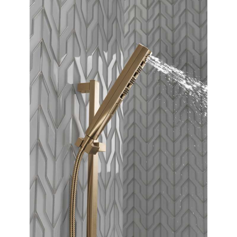 Experience a better shower with the control and flexibility of a Delta hand shower. Great for showering yourself or your loved ones and pets, as well as for keeping your shower and tub clean. Delta H2Okinetic Showers look different because they are different. Using advanced technology, H2Okinetic showers sculpt water into a unique wave pattern, giving you 3X the coverage of a standard shower head and the feeling of more water without using more water. The pause setting gives you ample space for shaving, lathering and other shower tasks, then easily restarts the water with the temperature where you left off. This spray setting helps you conserve water, so you can worry less about depleting your supply of hot water - and you help the environment too. Delta Lumicoat Finishes are guaranteed to resist water spots and mineral buildup and easily wipe clean without the need for cleaners or chemicals. The ultra-sleek surface repels liquids, resisting water spots and staying cleaner longer, so your faucet’s most commonly touched areas stay beautiful. While other products may gather unsightly mineral build-up over time, Delta soft rubber Touch-Clean spray holes allow any mineral residue to simply be wiped away for an instantly refreshed look – with no need for soaking or the aid of chemical cleaners. You can install with confidence, knowing that Delta faucets are backed by our Lifetime Limited Warranty.