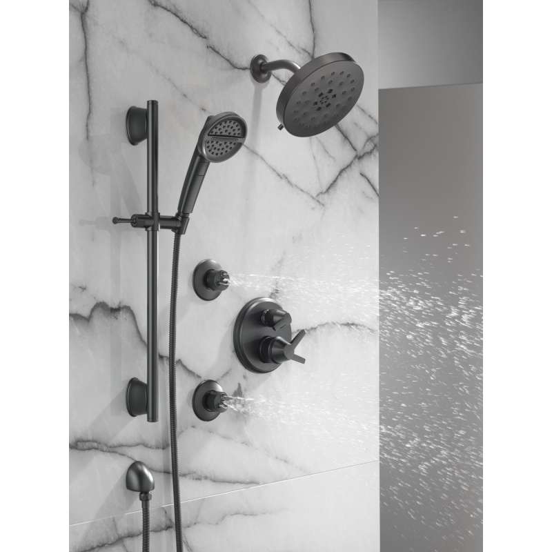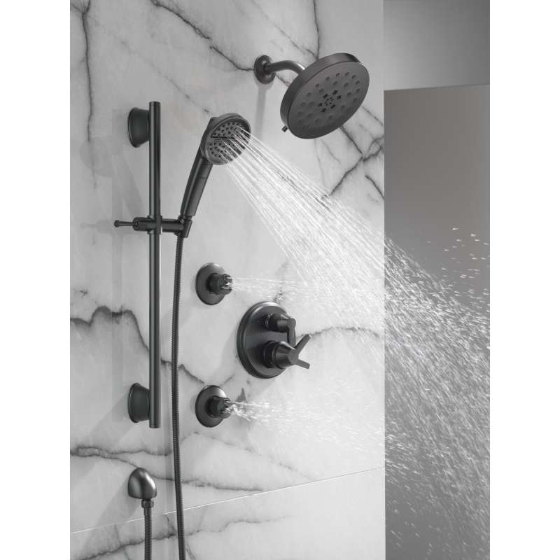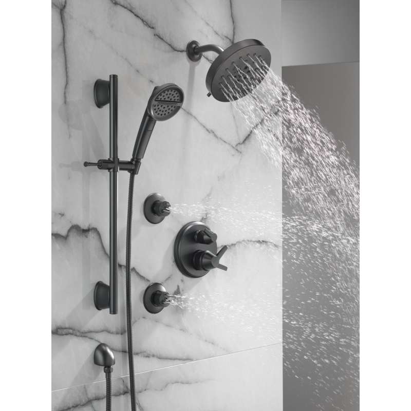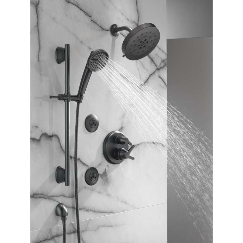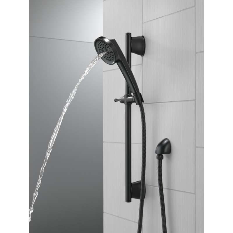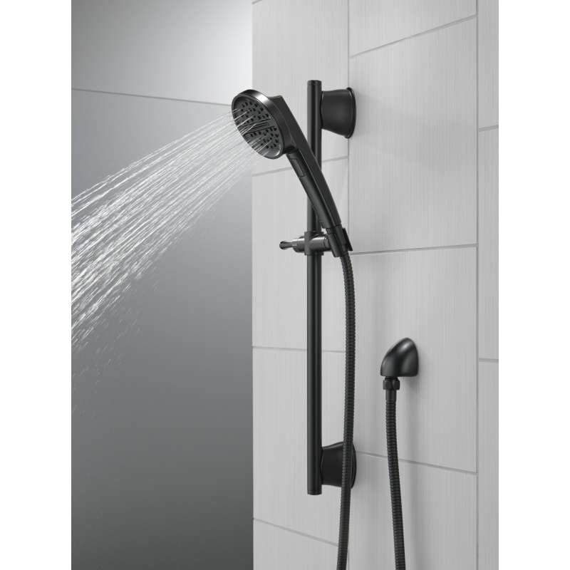 Experience a better shower with the control and flexibility of a Delta hand shower. Great for showering yourself or your loved ones and pets, as well as for keeping your shower and tub clean. This 24" slide bar with hand shower features a pivot slide mechanism for easy operation. The hand shower mount can be rotated forward for improved control over the direction of the water coming from your hand shower for an enhanced showering experience. The pause setting gives you ample space for shaving, lathering and other shower tasks, without worrying about overspray or water waste. This spray setting helps you conserve water, so you can worry less about depleting your supply of hot water - and you help the environment too. While other products may gather unsightly mineral build-up over time, Delta soft rubber Touch-Clean spray holes allow any mineral residue to simply be wiped away for an instantly refreshed look – with no need for soaking or the aid of chemical cleaners.