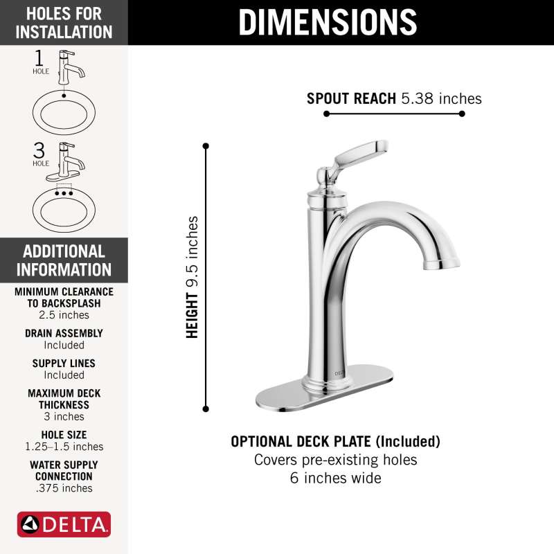The woodhurst bath collection’s refined style and forward-leaning spout lends an alluring charm to your bath, while the button-cap detailing gives a classic familiarity. Delta faucets with diamond seal technology perform like new for life with a patented design which reduces leak points, is less hassle to install and lasts twice as long as the industry standard. Watersense labeled faucets use at least 20% less water than the industry standard — helping you save water without compromising performance. You can install with confidence, knowing that delta faucets are backed by our lifetime limited warranty.