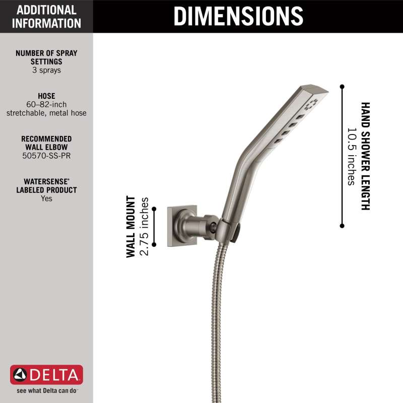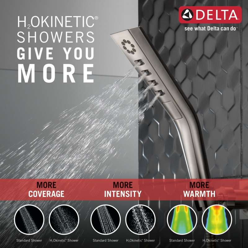Experience a better shower with the control and flexibility of a Delta hand shower. Great for showering yourself or your loved ones and pets, as well as for keeping your shower and tub clean. Delta H2Okinetic Showers with PowerDrench Spray look different because they are different. H2Okinetic showers are powered by an innovative technology that sculpts the water into a unique wave pattern, giving you the feeling of more water and water pressure. Delta WaterSense labeled faucets, showers and toilets use at least 20% less water than the industry standard — helping you save water without compromising performance. You can install with confidence, knowing that Delta showers are backed by our Lifetime Limited Warranty.