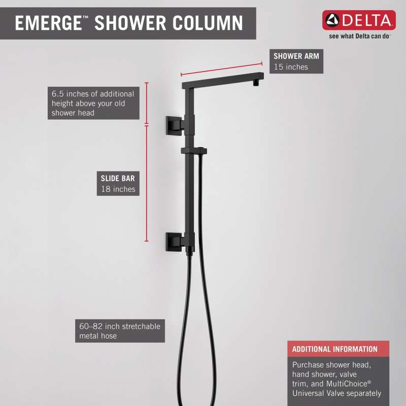 The Emerge Shower Column transforms your shower without altering the plumbing behind your shower wall. Inspired by modern European styles, the bold profile and impactful design exude an upscale motif while the customizability of the hand shower and overhead shower head combo revitalizes your showering experience. The Emerge Shower Column works with any overhead shower head with no need to run plumbing through the ceiling. An integrated, 3-way diverter allows use of the overhead shower and the hand shower together or separately.