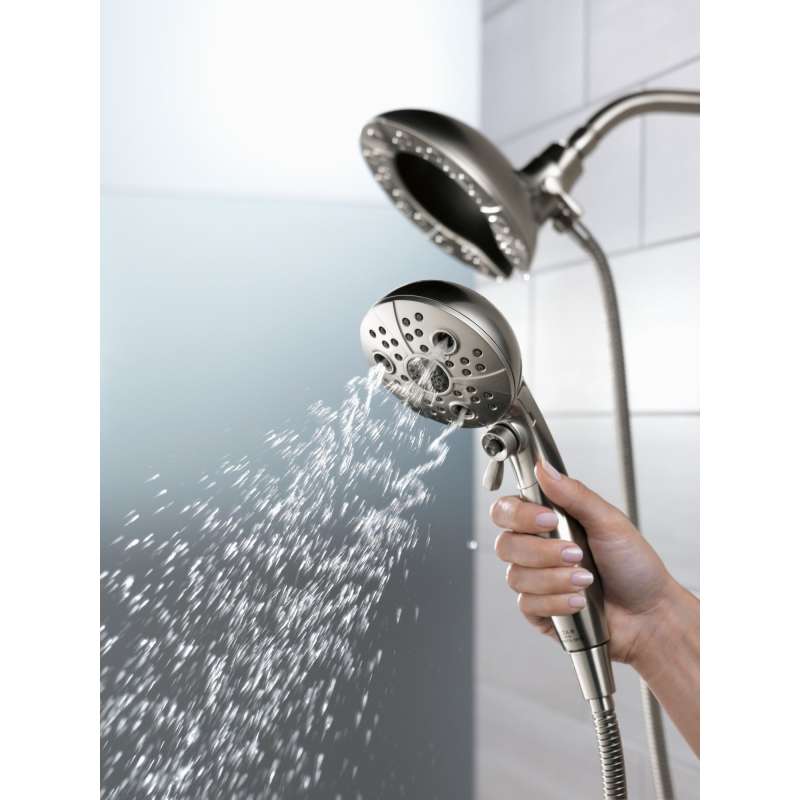 The Delta In2ition Two-in-One Shower features a detachable hand shower which can be used separately from or simultaneously with the shower head. This integrated dual-functionality gives you maximum flexibility without sacrificing warmth, as you can choose to have water streaming from the shower head only, the hand shower only or both the shower head and hand shower at once. Delta MagnaTite Docking uses a powerful integrated magnet to pull your In2ition hand shower precisely into place and hold it there so it stays docked when not in use. You can install with confidence, knowing that Delta showers are backed by our Lifetime Limited Warranty.
