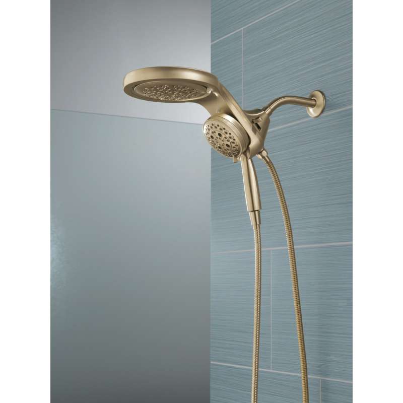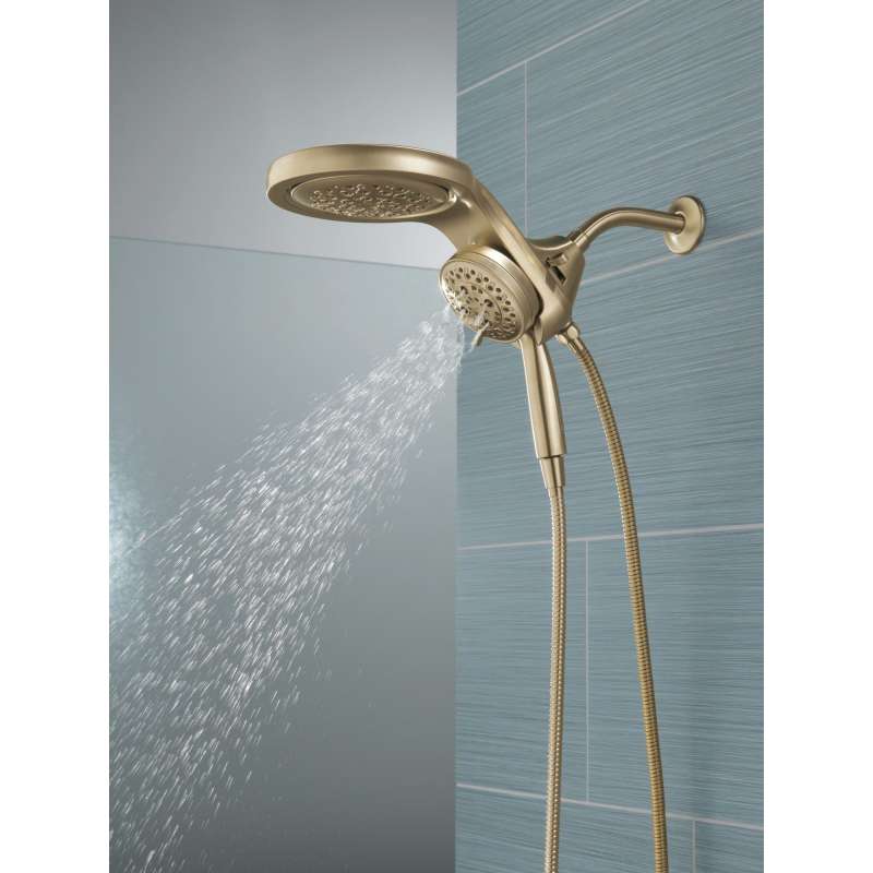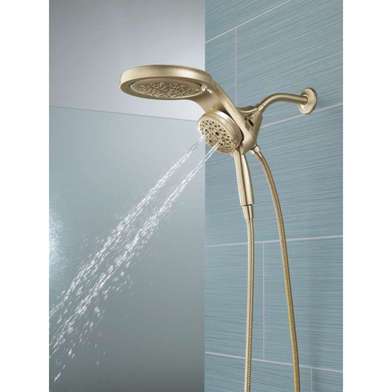 A Delta HydroRain H2Okinetic Two-in-One Shower Head with hand shower completely transforms your shower with dual shower head functionality, featuring an integrated raincan and hand shower. The power of the raincan and hand shower together creates an immersive, spa-like showering experience that you can install in minutes to a standard shower arm, without altering the plumbing behind the wall. The integrated hand shower stays put every time you dock thanks to MagnaTite Docking and provides maximum flexibility and control when you need it, while the H2Okinetic PowerDrench Spray feels like more water, warmth and intensity without using more water. Don’t just take a shower, transform it, with a Delta HydroRain Shower Head. While other products may gather unsightly mineral build-up over time, Delta soft rubber Touch-Clean spray holes allow any mineral residue to simply be wiped away for an instantly refreshed look – with no need for soaking or the aid of chemical cleaners. The pause setting gives you ample space for shaving, lathering and other shower tasks, without worrying about overspray or water waste. This spray setting helps you conserve water, so you can worry less about depleting your supply of hot water - and you help the environment too. Delta WaterSense labeled faucets, showers and toilets use at least 20% less water than the industry standard—saving you money without compromising performance.