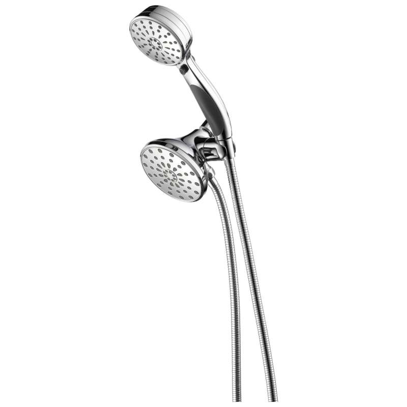 With three spray-selection buttons and a pause feature, ActivTouch hand showers allow you to choose from up to nine different spray settings with a simple, one-handed activation, delivering a new level of innovation for an enhanced handheld showering experience. While other products may gather unsightly mineral build-up over time, Delta soft rubber Touch-Clean spray holes allow any mineral residue to simply be wiped away for an instantly refreshed look – with no need for soaking or the aid of chemical cleaners. The pause setting gives you ample space for shaving, lathering and other shower tasks, then easily restarts the water with the temperature where you left off. This spray setting helps you conserve water, so you can worry less about depleting your supply of hot water - and you help the environment too. Delta WaterSense labeled faucets, showers and toilets use at least 20% less water than the industry standard—saving you money without compromising performance. Create a luxurious shower experience with a Delta hand shower/shower head combination. Whether you're remodeling your space or upgrading your existing setup, our hand shower/shower head combos will give you more flexibility and coverage in a variety of stunning styles.